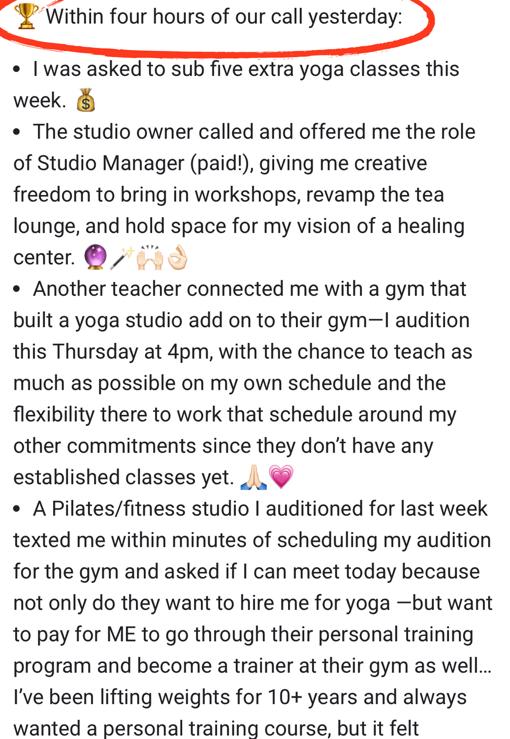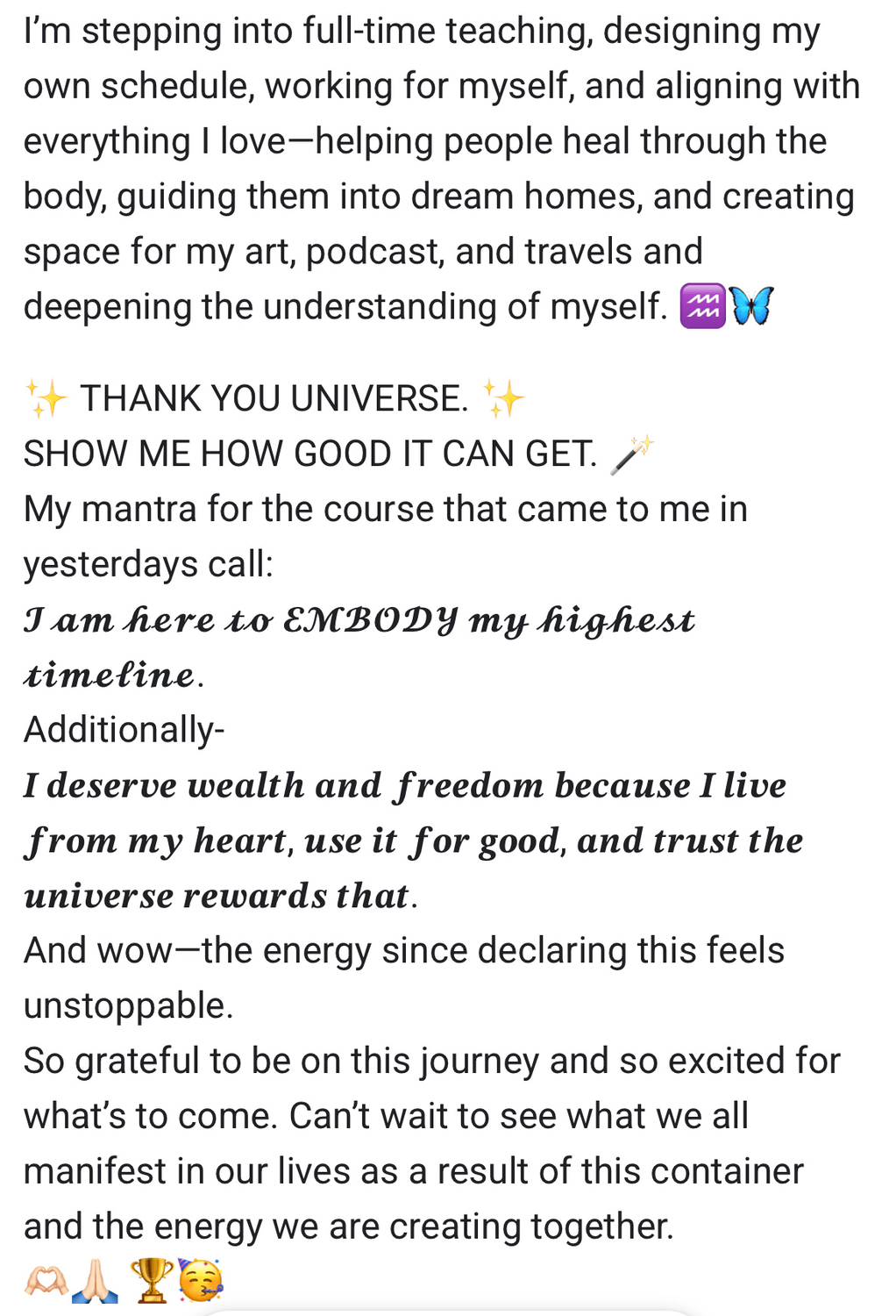 I went from being overwhelmed and unclear to calling in my first aligned client and feeling more radiant, sovereign, and fulfilled than I ever have.